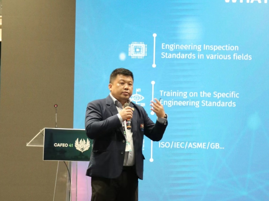 过晓丹作报告 东盟工程注册及东盟工程督查(AEI)制造组主席、东盟工程注册执行委员会委员陈志辉分享了东盟工程督查发起的东盟工程标准倡议情况,并就马来西亚、缅甸、泰国、新加坡等东盟各国在电气、消防安全等方面的标准制定工作展开介绍。